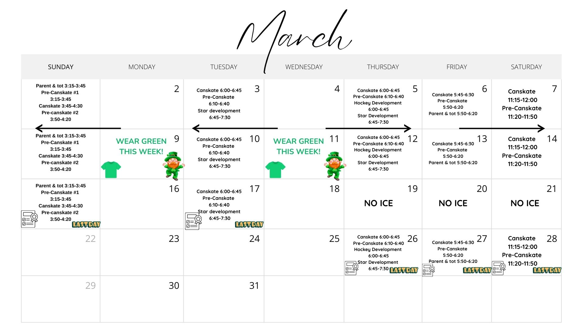 CanSkate March Schedule