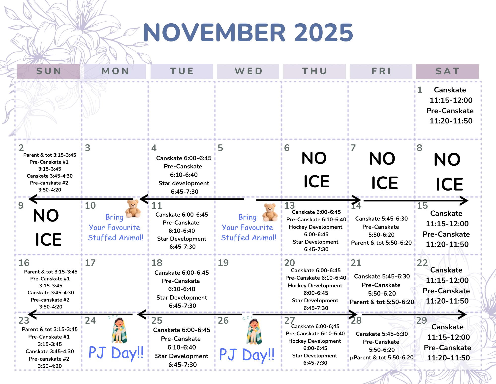 CanSkate November Schedule